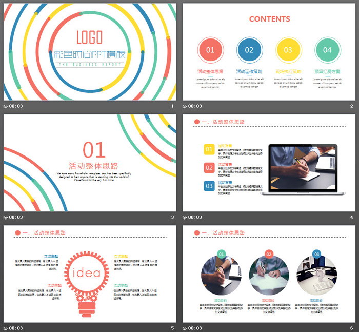 这是一套彩色圆圈背景的,时尚风活动策划PPT模板。共25张;