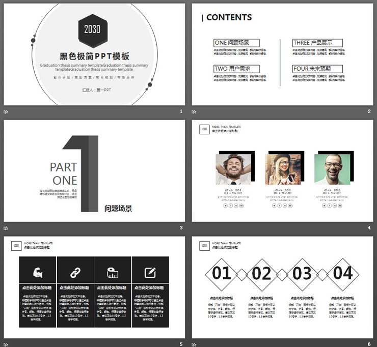 极简黑色圆环背景产品介绍PPT模板,共27页;