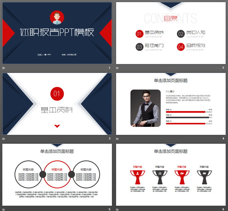 关键词:红蓝配色幻灯片模板,实用个人述职报告PPT模板免费下载,.PPTX格式;