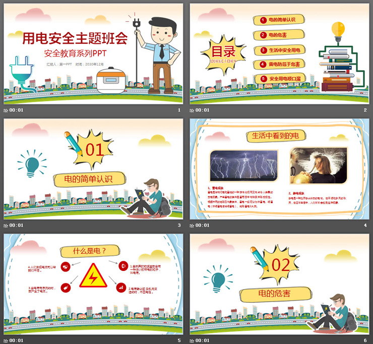 关键词:安全用电PPT模板,安全用电主题班会PPT免费下载,.PPTX格式;