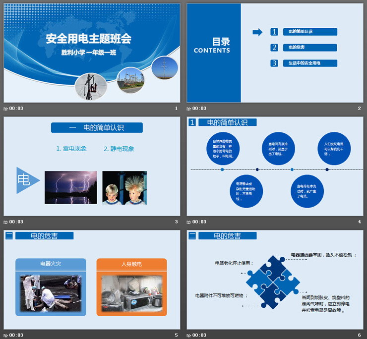 用电安全主题班会PPT内容简介: