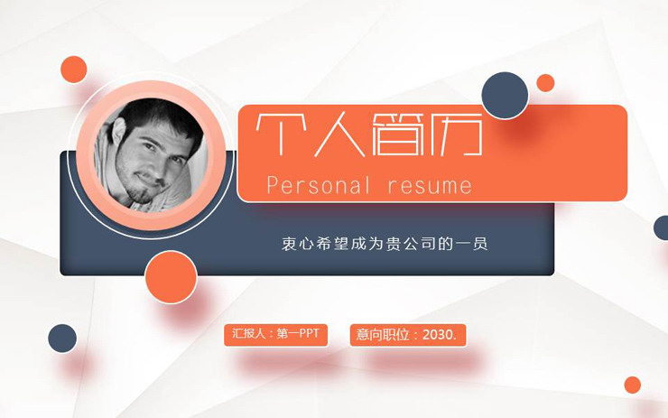 关键词:简洁个人简历PPT模板,蓝色橙色搭配的个人简历PPT模板免费下载,.PPTX格式;