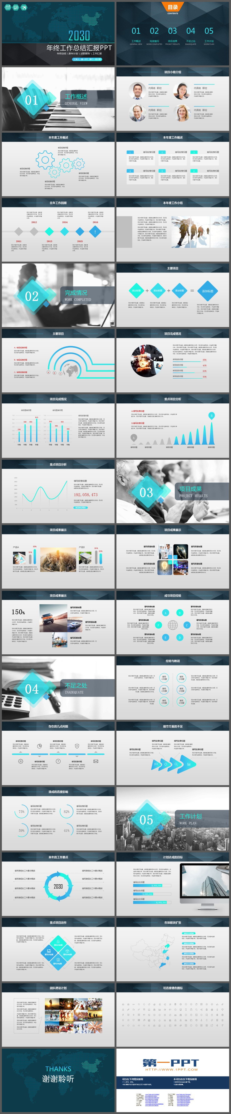 本模板设计稳重商务,适合用于制作年终工作总结PPT、工作汇报PPT、述职报告PPT等。.PPTX格式;