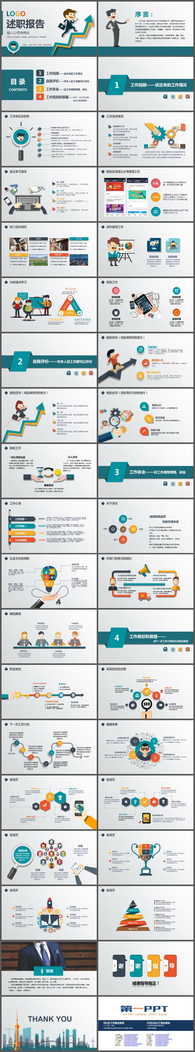 彩色扁平化个人述职报告PPT模板免费下载,共37页;