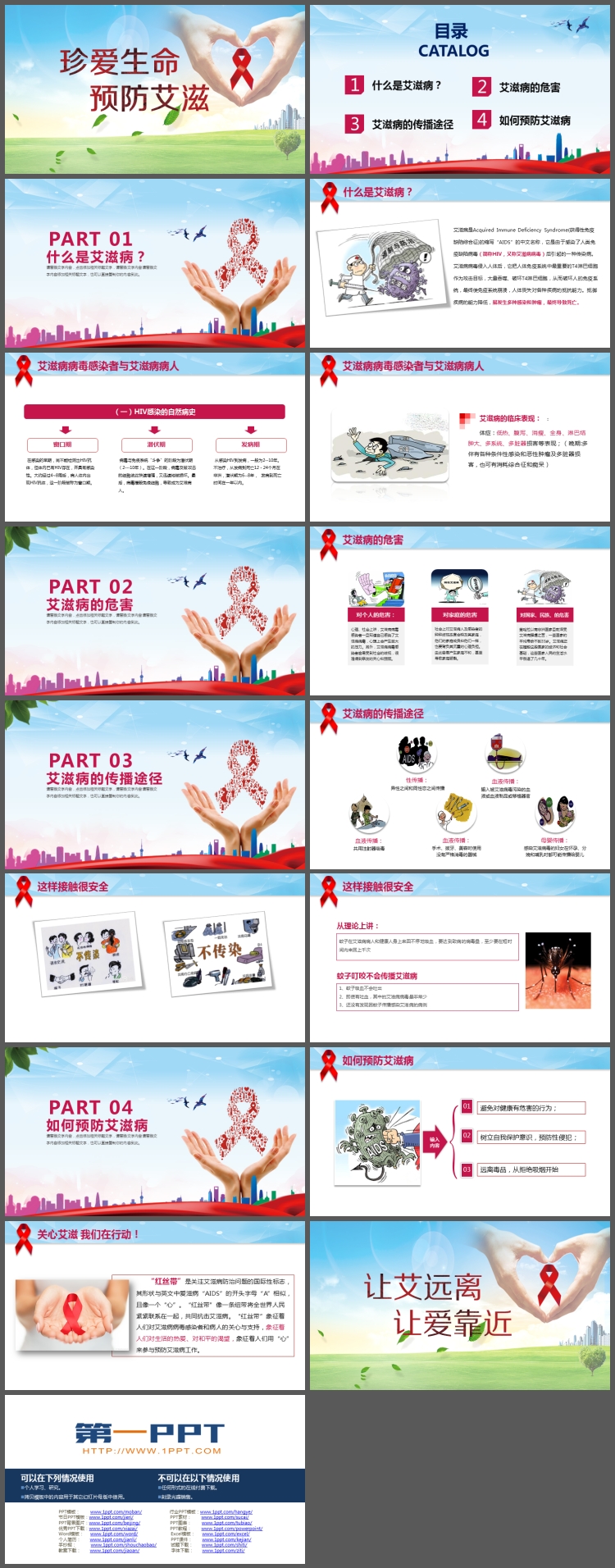 这是一套珍爱生命预防艾滋PPT,共16页;