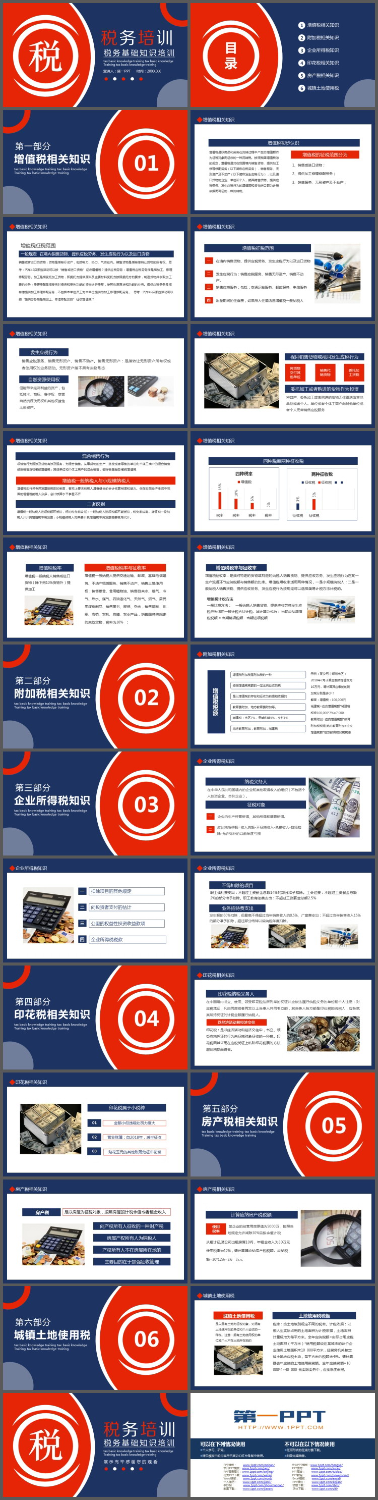 这是一套红蓝配色的税务基础知识培训PPT,共27页;