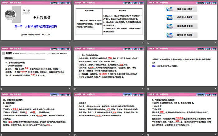 关键词:中图版高中地理必修二PPT课件免费下载,乡村和城镇内部的空间结构PPT下载,乡村和城镇PPT下载,.PPT格式;