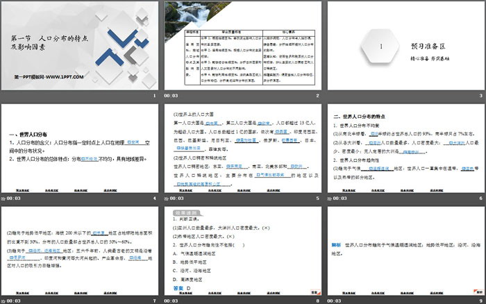 人口分布的特点及影响因素PPT,第二部分内容:预习准备区