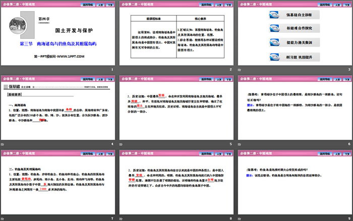 关键词:中图版高中地理必修二PPT课件免费下载,南海诸岛与钓鱼岛及其附属岛屿PPT下载,国土开发与保护PPT下载,.PPT格式;