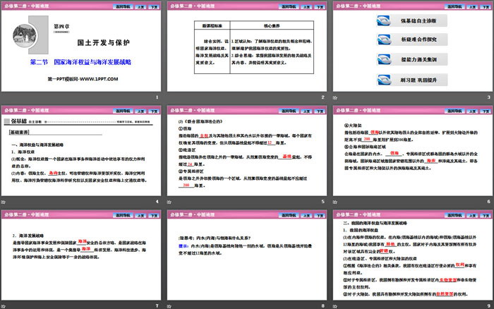 关键词:中图版高中地理必修二PPT课件免费下载,国家海洋权益与海洋发展战略PPT下载,国土开发与保护PPT下载,.PPT格式;