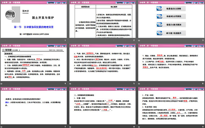 关键词:中图版高中地理必修二PPT课件免费下载,京津冀协同发展的地理背景PPT下载,国土开发与保护PPT下载,.PPT格式;