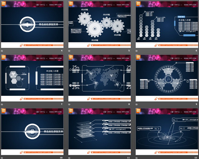这是一套极赋科技感的,白色半透明动态PPT图表,共24张。第一PPT模板网提供精美幻灯片图表免费下载;