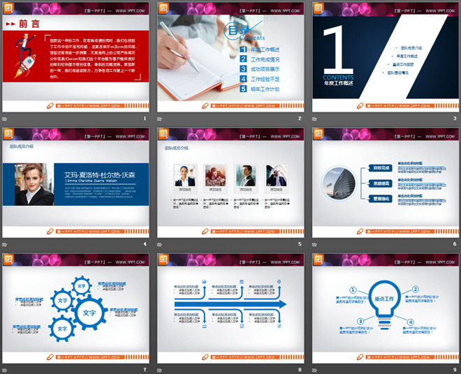 蓝色动态年度工作总结PPT图表大全