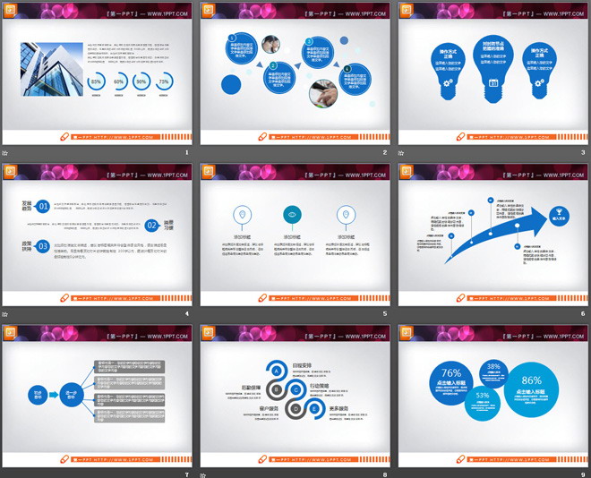 这是一套蓝色扁平化通用商务PPT图表,共18张。第一PPT模板网提供精美幻灯片图表免费下载;
