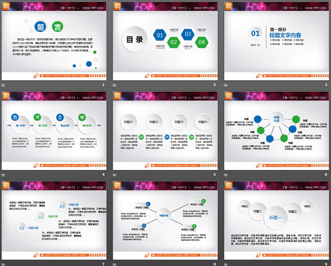 这是一套微立体风格的,蓝绿动态年中工作总结PPT图表大全,共32张。第一PPT模板网提供精美微立体幻灯片图表免费下载;