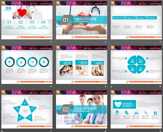 这是一套蓝色扁平化风格的,医疗医院PPT图表大全,共24张。第一PPT模板网提供医疗医学幻灯片图表免费下载;