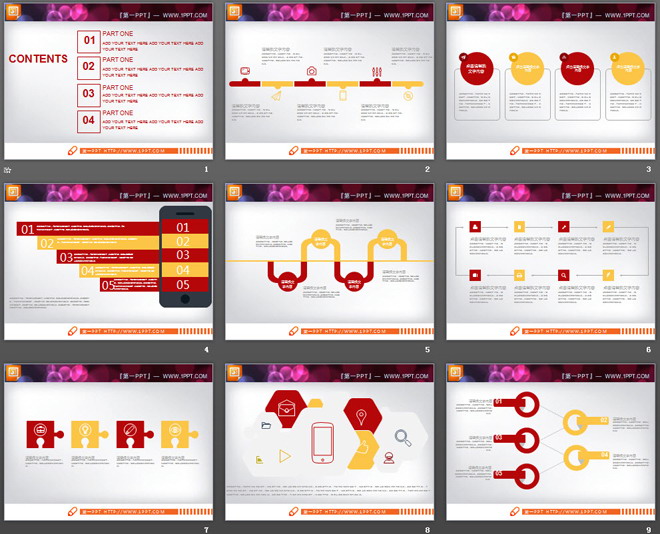 关键词:红黄PPT图表现在,扁平化幻灯片图表,红色PowerPoint图表整套下载,.PPTX格式;