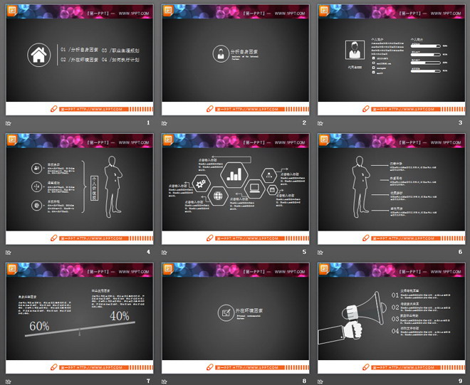 关键词:细线风格PowerPoint图表整套下载,动态求职竞聘PPT图表,.PPTX格式;