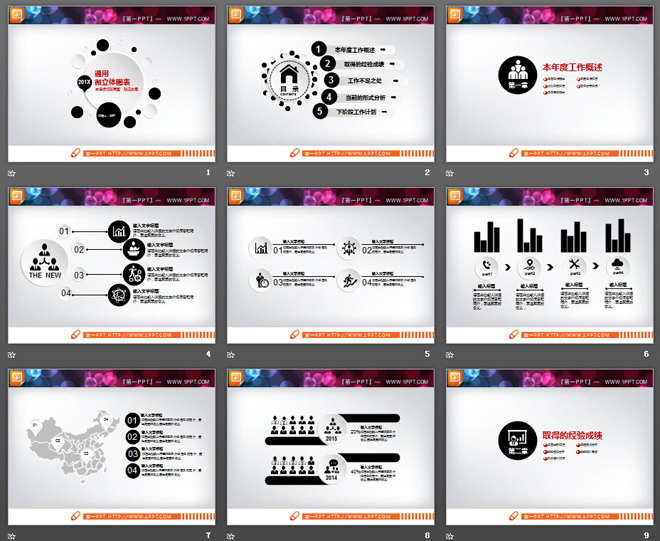 这是一套黑白配色的,微立体设计风格,工作总结汇报PPT图表。共32张。第一PPT模板网提供精美幻灯片图表打包下载;