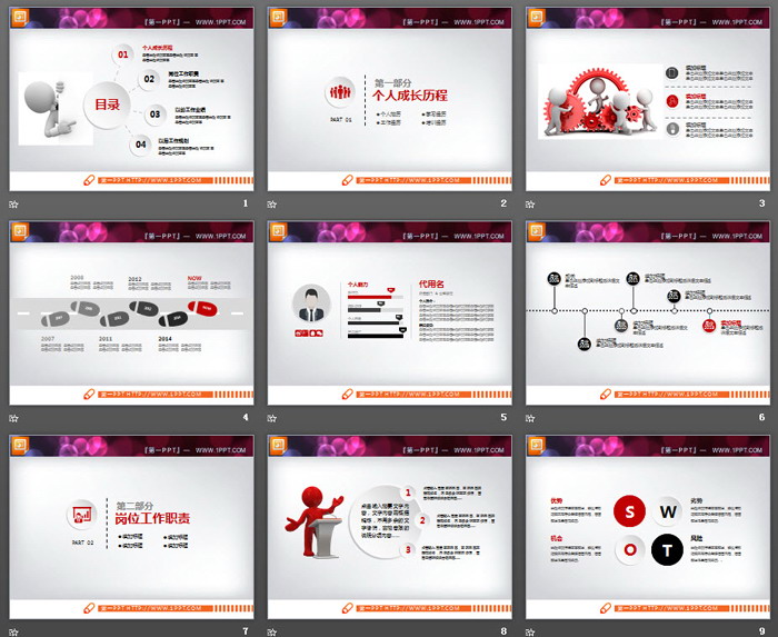 这是一套白色立体小人装饰的,微立体风格,个人求职PPT图表大全。共29张。第一PPT模板网提供精美幻灯片图表免费下载;