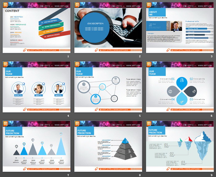 这是一套红黄绿蓝四色组合的,扁平化商业计划书PPT图表大全,共31张。第一PPT模板网提供精美幻灯片图表免费下载;