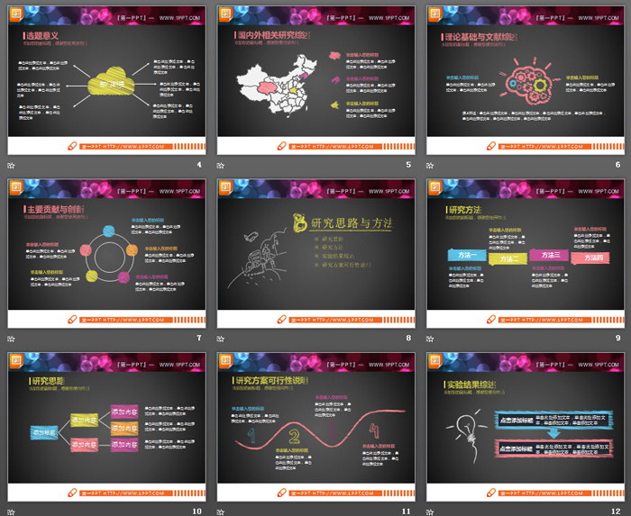 这是29张粉笔手绘风格毕业答辩PPT图表,图表类型丰富,包括各种关系图、陈述说明图表、数据分析图表等。幻灯片图表设计以毕业论文答辩PPT为主线制作。PowerPoint图表非常精美实用。.PPTX格式;