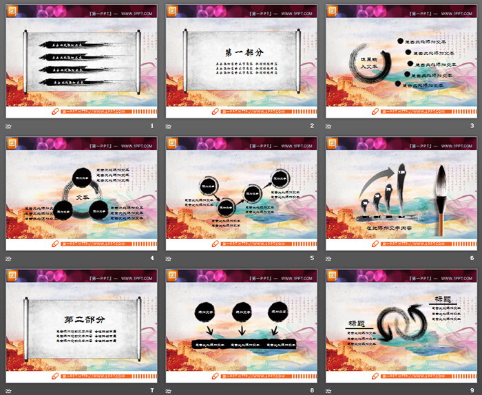 精美动态水墨中国风PPT图表整套下载