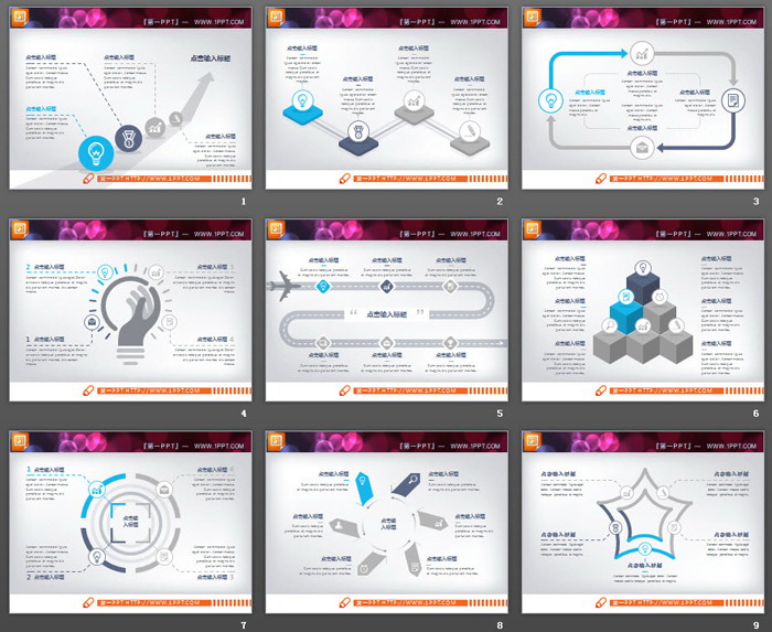 关键词:蓝色灰色组合幻灯片图表整套下载,扁平化商务PowerPoint图表免费下载,.PPTX格式;