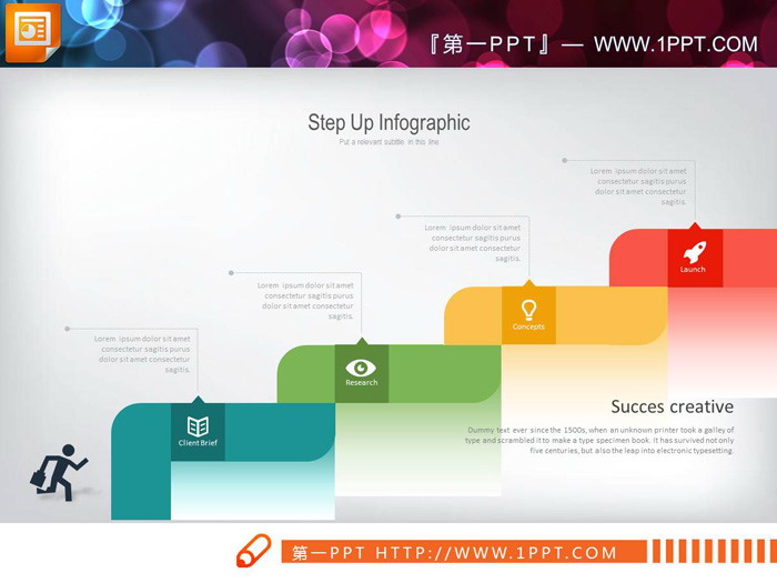 这是三张台阶样式的递进关系PPT图表,第一张为彩色扁平化风格,第二张为蓝灰搭配,第三张为蓝色箭头图表。.PPTX格式;