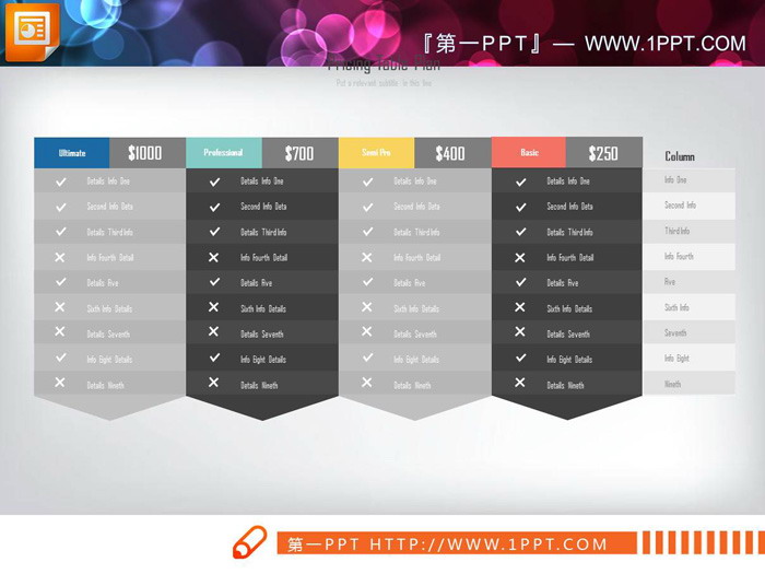 这是两张彩色扁平化风格的,尖角PPT表格素材,.PPTX格式;