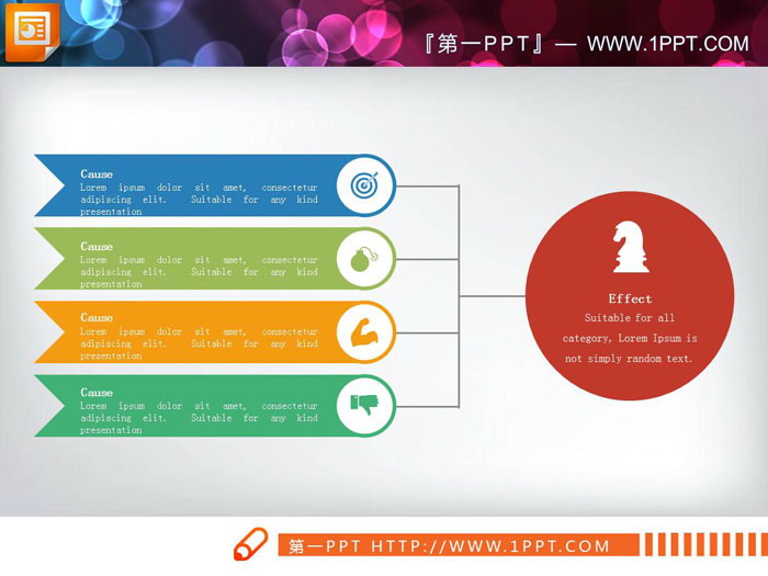 彩色扁平化风格聚合关系PPT图表