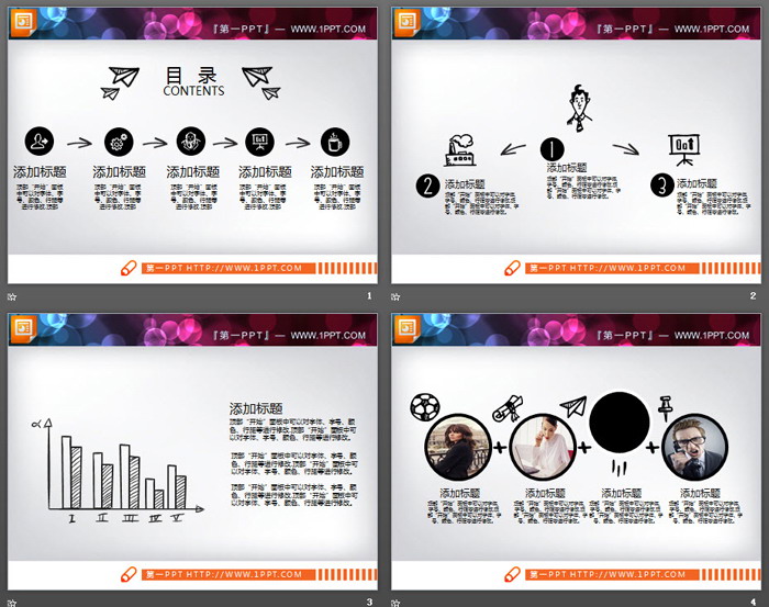 19张黑白创意手绘PPT图表免费下载