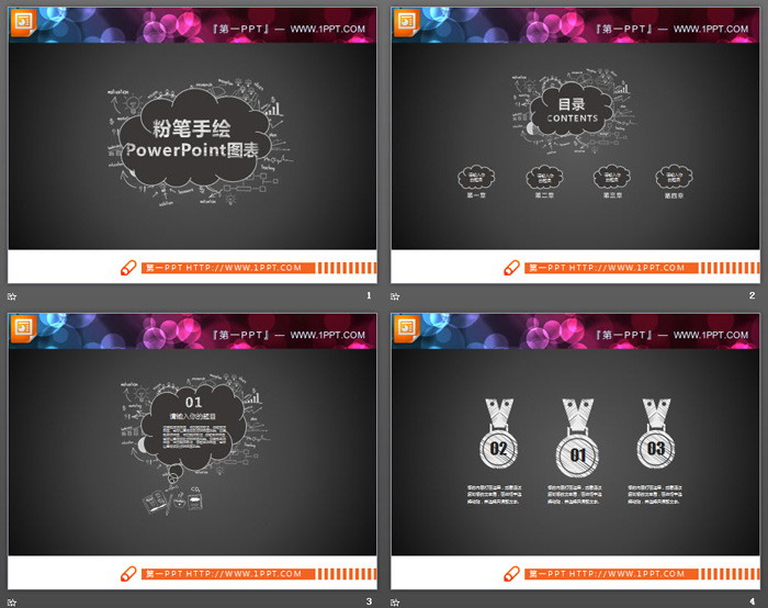 26张白色粉笔手绘PPT图表大全