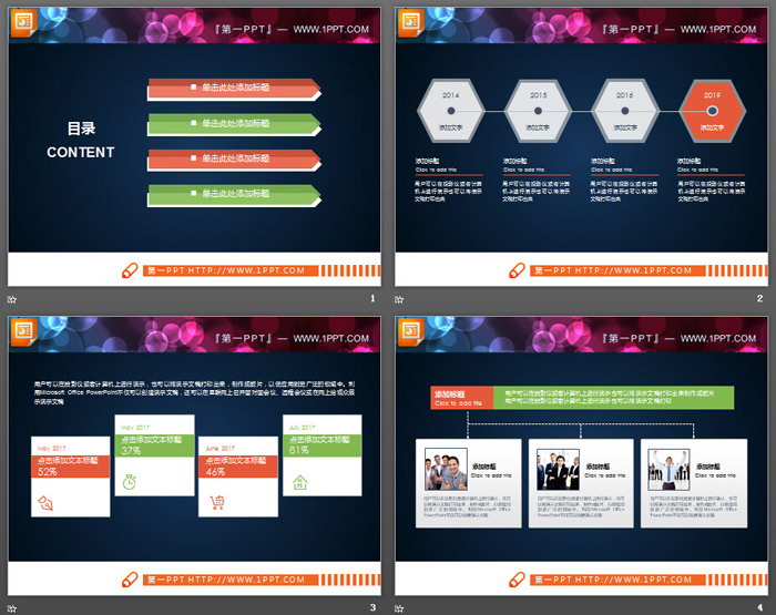 PPT图表采用了扁平化设计风格制作,颜色可自己编辑。图表内容使用了多张商务插图装饰,可根据自己需求替换。.PPTX格式;