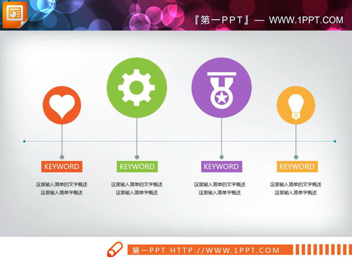 这是4张彩色扁平化风格的,并列关系PPT图表。.PPTX格式;