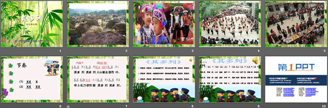 1. 其多列,其多列,上山坡去拣竹叶,带上长刀砍竹筒,其多列,其多列。