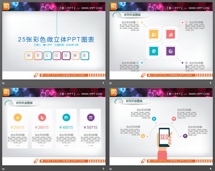 这是25张彩色微立体并列关系PPT图表,第一PPT模板网提供幻灯片图表免费下载。.PPTX格式;