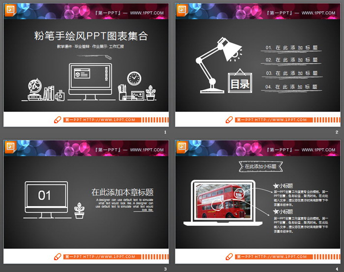 白色粉笔手绘风PPT图表集合