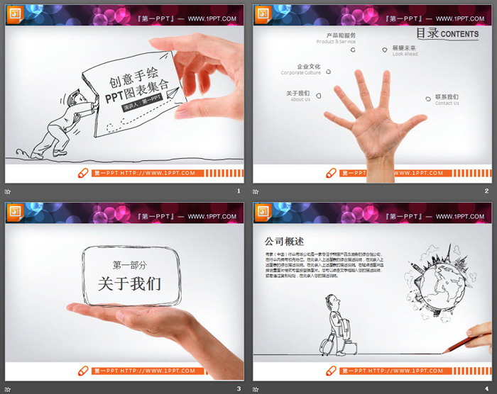 38张创意手绘PPT图表大全