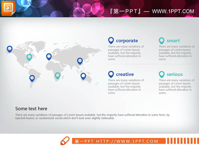 多种配色的世界地图PPT图表