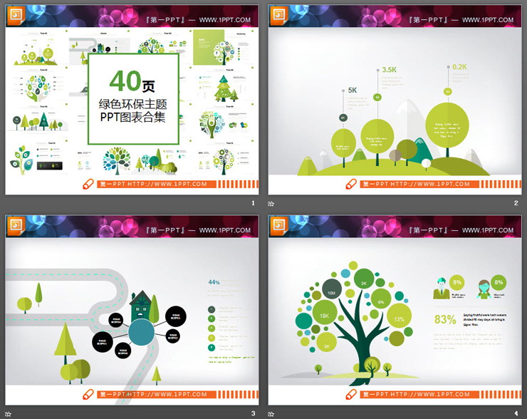 40页扁平化绿色环境保护主题PPT图表大全,扁平化风格设计,绿色环保主题。.PPTX格式;