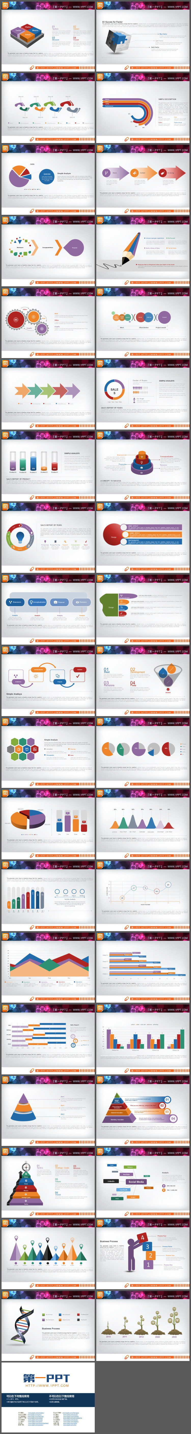 38张彩色扁平化数据分析PPT图表合集,包括各种柱状图、折线图、曲线图等。大部分图表是可以进行数据编辑动态改版形状的,适合用于制作各类数据分析PPT使用。.PPTX格式;