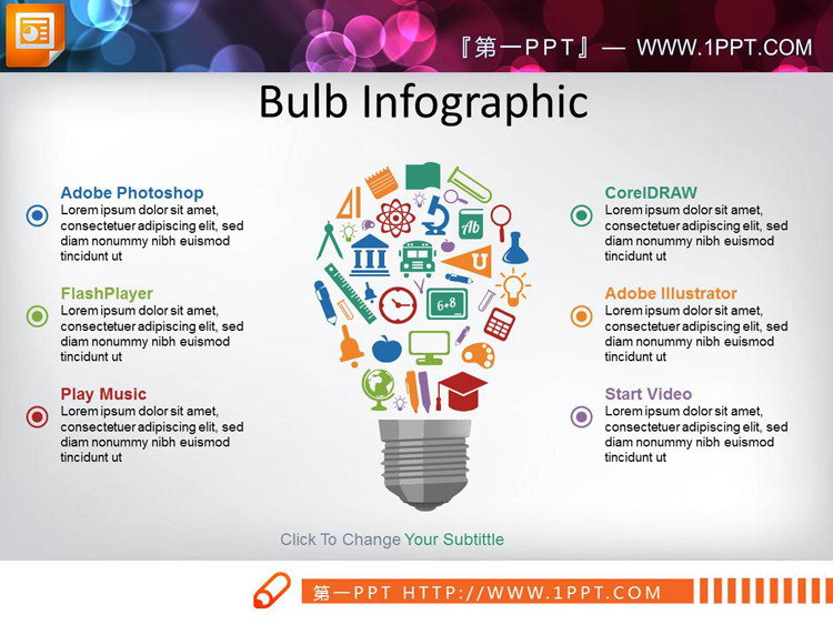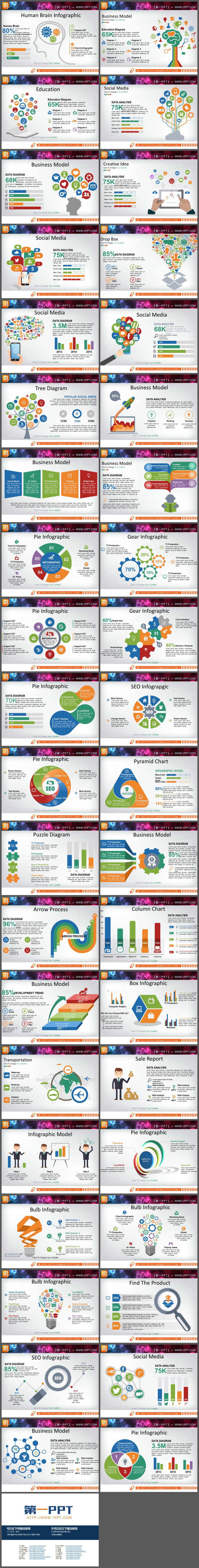 彩色扁平化商务PPT信息图表合集,共40页。包括:灯泡信息图表、移动互联网信息图表、柱状图、联动关系等。.PPTX格式;