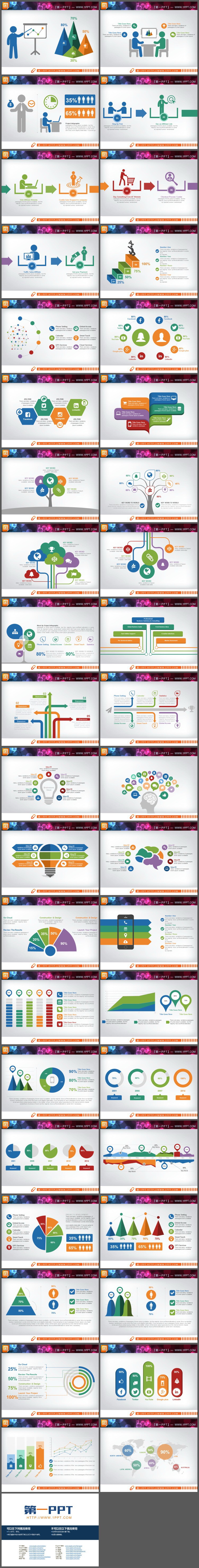 彩色扁平化商务PPT信息图表合集