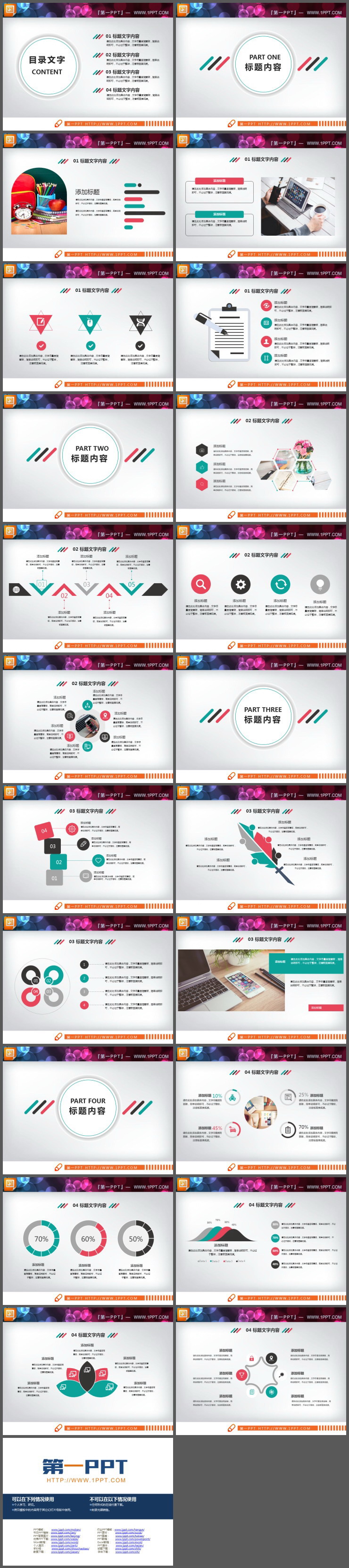 22张彩色扁平化PPT图表合集