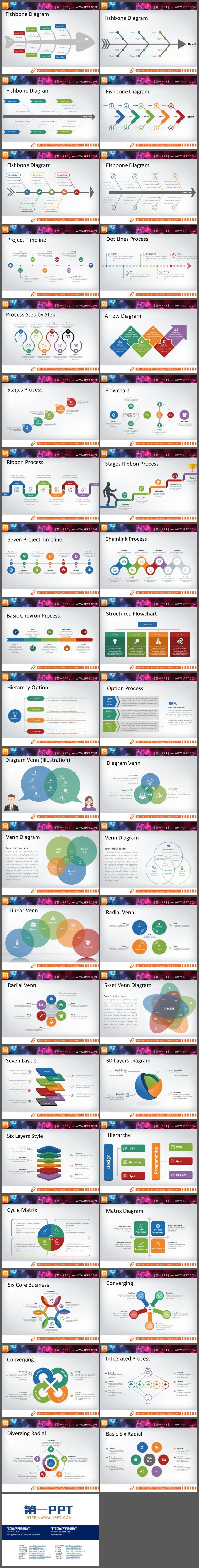 40张鱼骨递进交叉PPT图表。PPT图表采用了彩色扁平化风格设计制作。包括:鱼骨图、交叉关系、层级递进个性、扩散关系、聚合关系等PPT图表。.PPTX格式;