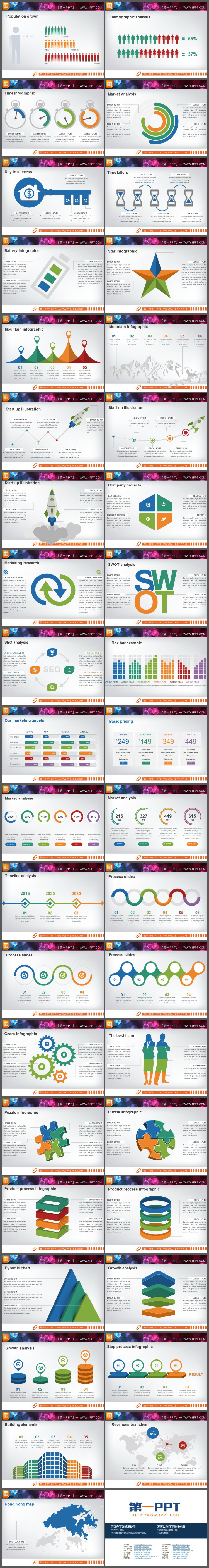 39页欧美彩色商务PPT图表合集