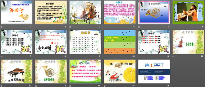 关键词:法国号教学课件,一年级上册音乐PPT课件下载,一年级音乐幻灯片课件下载,法国号PPT课件下载,.PPT格式;