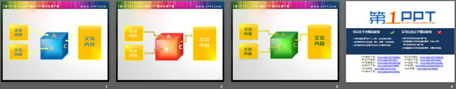 这是三张立体方块内容呈现PPT素材,第一PPT模板网提供幻灯片素材免费下载。