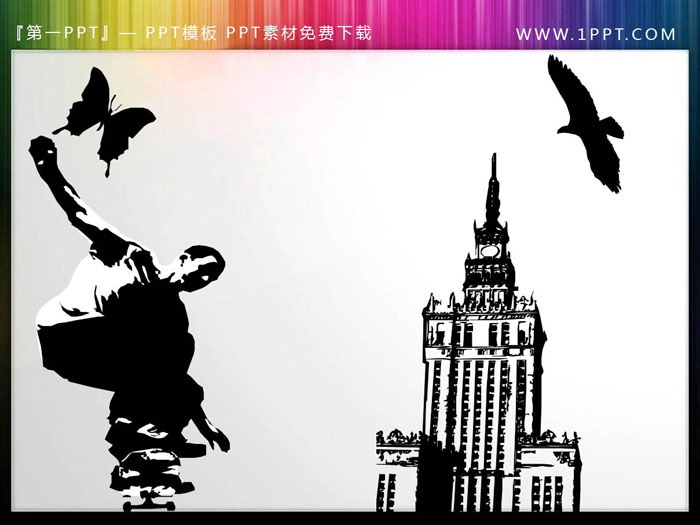 这是6组运动主题的,黑色PPT人物剪影。包括马术、滑板街舞、篮球等。.PPTX格式;